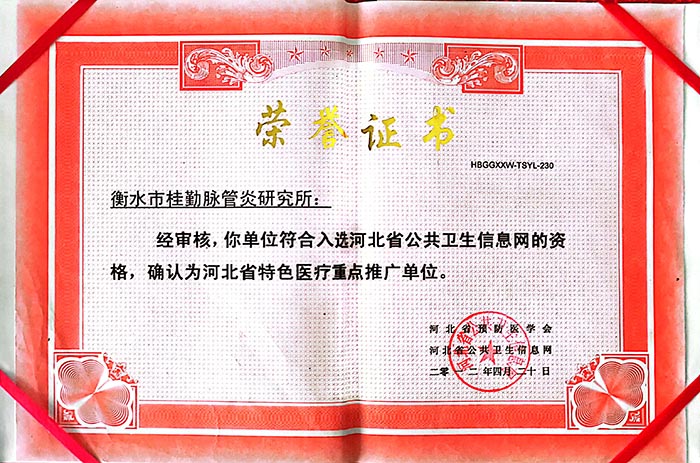 河北衡水桂勤脈管炎研究所,由河北脈管炎專家主任醫師張桂勤創辦,是一所**研究治療脈管炎、靜脈炎、靜脈血栓、靜脈曲張、糖尿病足、肢體動脈硬化閉塞癥、···